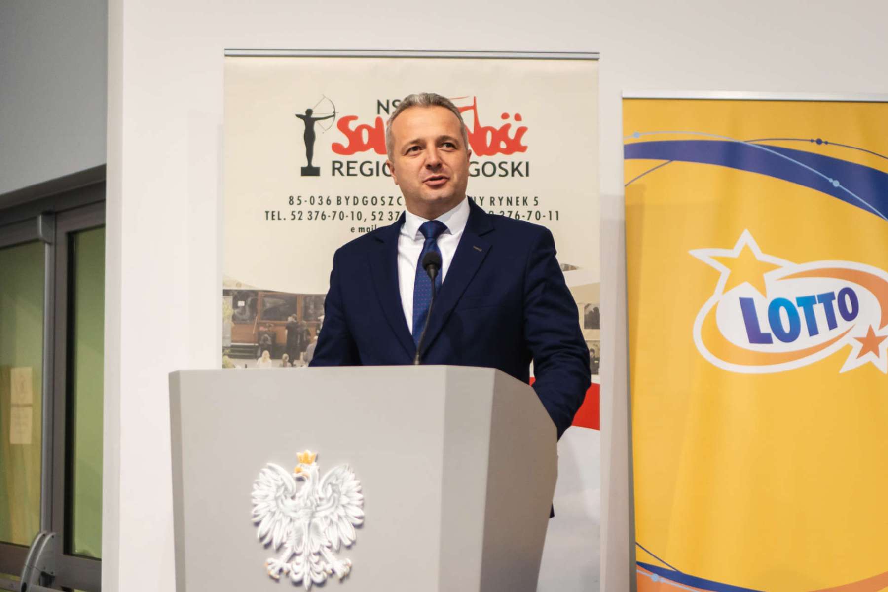 Za wzruszającą prezentację podziękował uczniom przewodniczący Zarządu Regionu Bydgoskiego NSZZ „Solidarność“ Sebastian Gawronek – Gdy wprowadzono stan wojenny byłem zszokowany, nie wiedziałem co się dzieje. Mój ojciec był aktywnym działaczem „Solidarności”. Pamiętam jak w naszym mieszkaniu zbierali się ludzie, aby po kryjomu słuchać Radia Wolna Europa. To był wtedy zakazany czyn. Pamiętam też wielu żołnierzy i sprzęt wojskowy na ulicach. Dlatego tak ważne dla mnie i dla całej „Solidarności” jest, żebyście znali historię. Żebyście przekazywali swoim rówieśnikom czym była „Solidarność” i żebyście wiedzieli jak walczono o wolną Ojczyznę. Pomóżcie nam, Solidarności, aby ta historia nie umarła – podkreślił przewodniczący Gawronek.