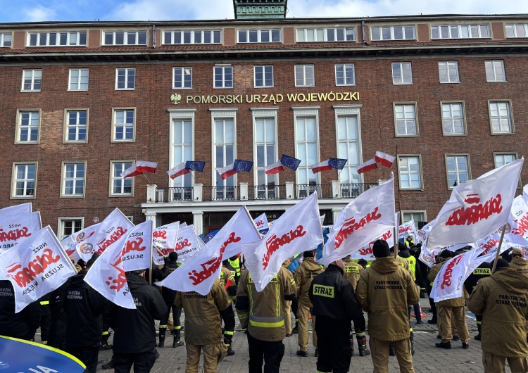 Pomorscy funkcjonariusze służb mundurowych protestowali dziś przed Pomorskim Urzędem Wojewódzkim w Gdańsku. Związkowcy domagali się między innymi 15 procentowych podwyżek wynagrodzeń oraz nowego programu modernizacji służb mundurowych.